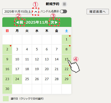 ※カレンダーは当月を先頭に2ヶ月先まで移動できます。