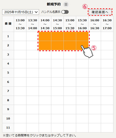 ⑤予約したい時間をクリックします。(もう一度クリックすると解除されます。)