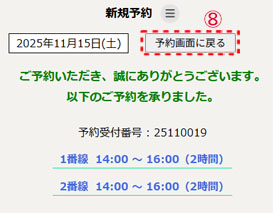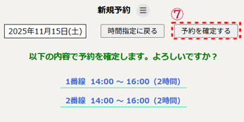 ⑦予約内容に間違いなければ[予約を確定する]ボタンをクリックします。